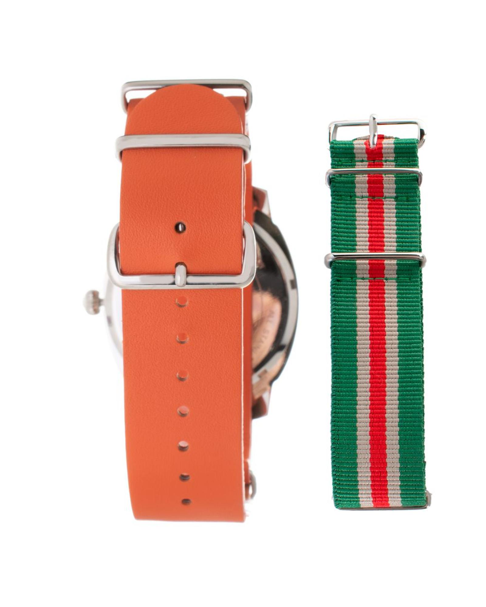 This men’s watch features a stylish orange leather strap and a sleek silver stainless steel case. It combines a classic analog display with reliable quartz movement, making it suitable for everyday wear and special occasions.