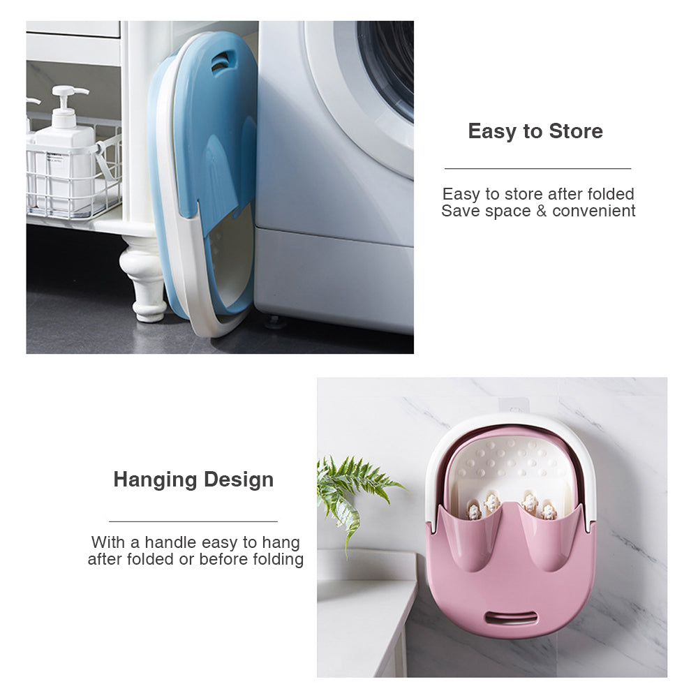 Foot Spa Water Pedicure Foldable Bucket Folding Massage Footbath Soaking Basin(Pink)