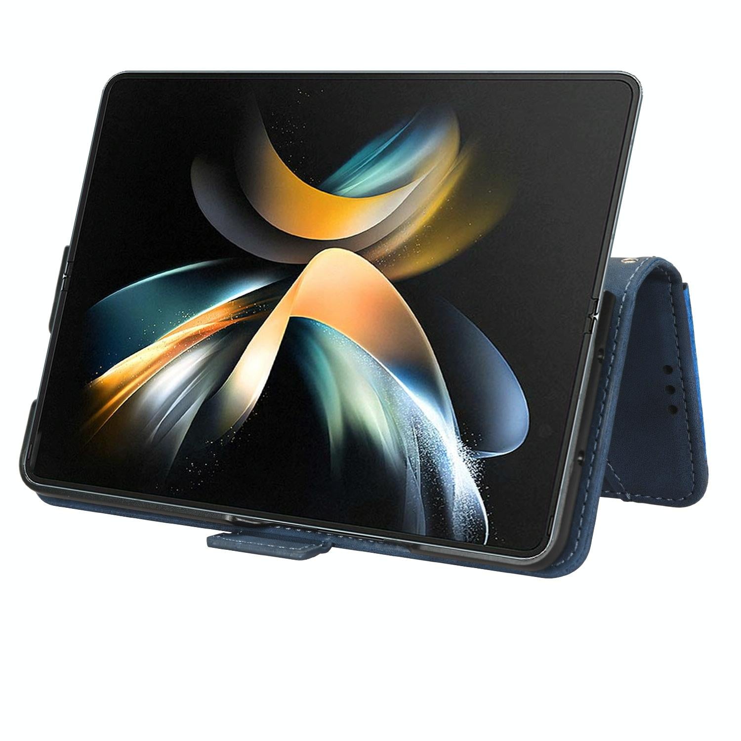 For Samsung Galaxy Z Fold4 5G Leather Phone Case With Card Slots And Calf Texture – Black
