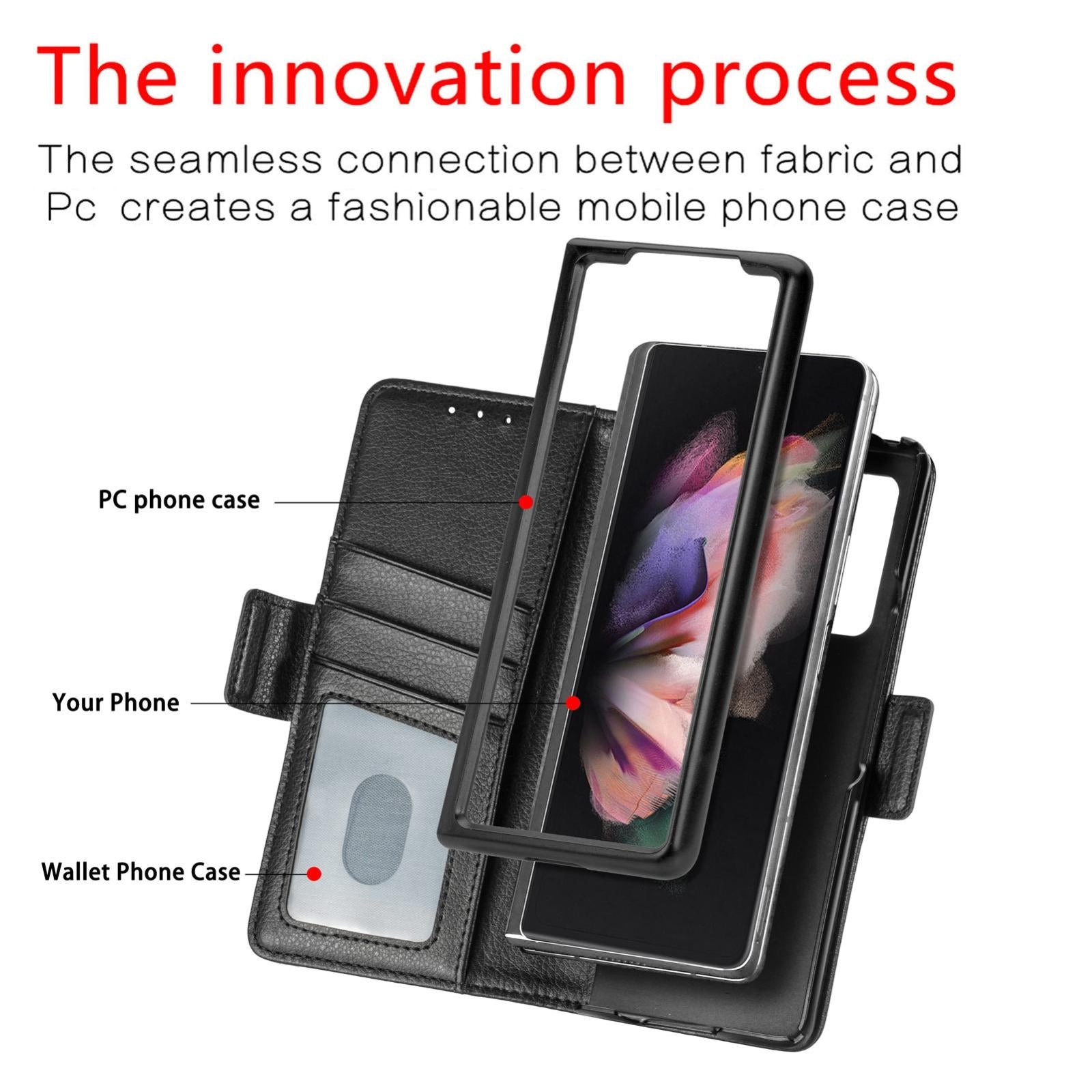 For Samsung Galaxy Z Fold4 5G Litchi Pattern Case With Pen And Card Slots – 4 – Black