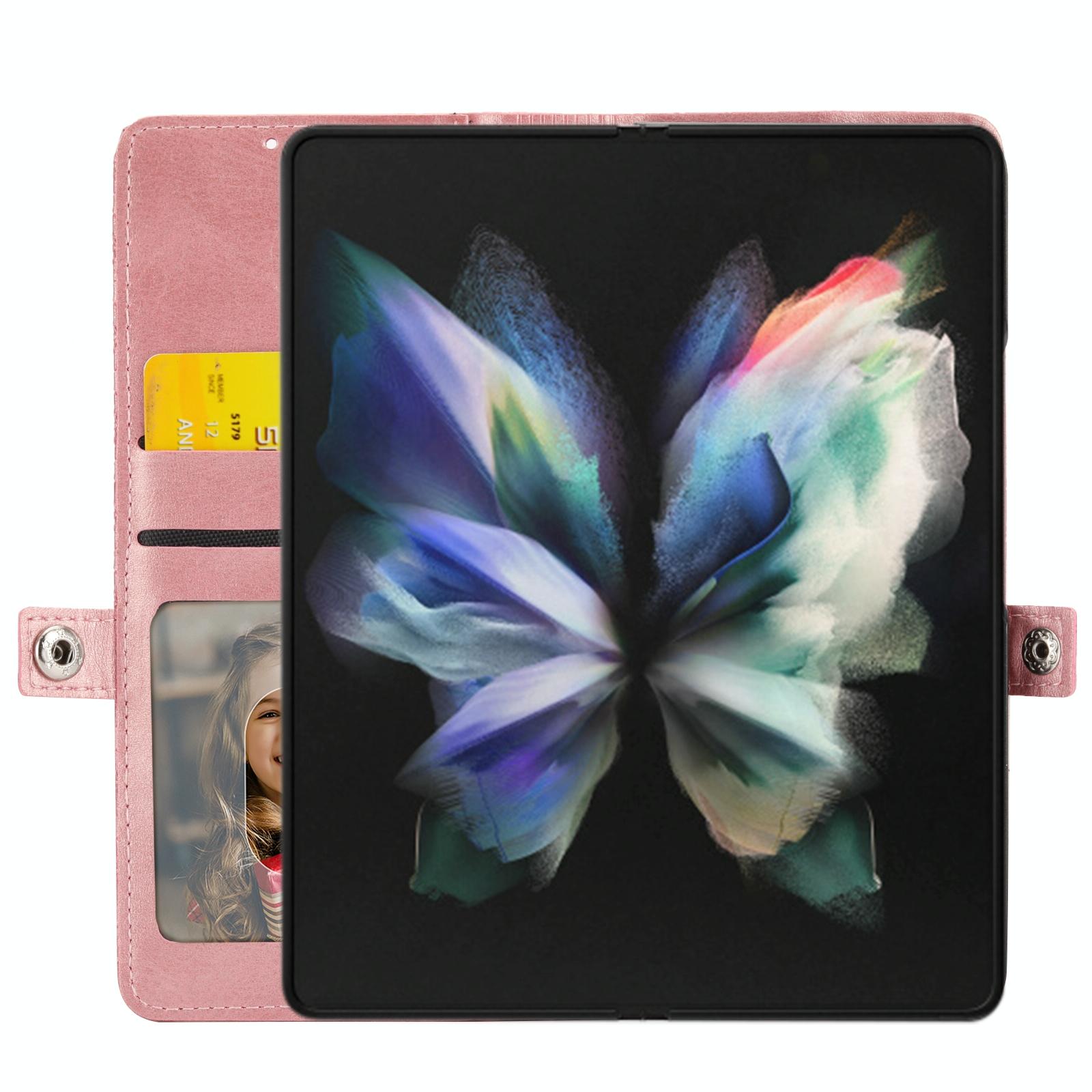 For Samsung Galaxy Z Fold4 5G Textured Leather Phone Case - Cubic Grid Design - Rose Gold
