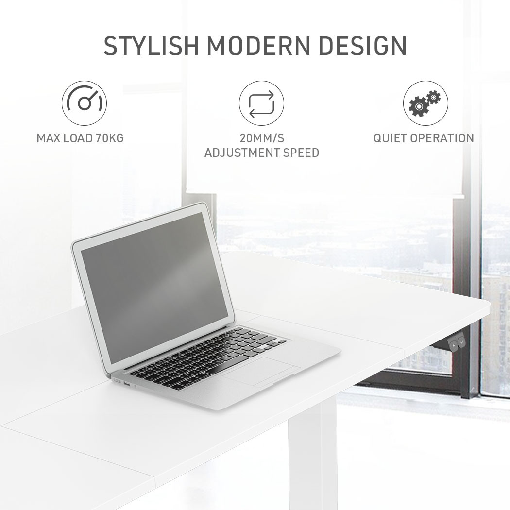 Fortia Sit To Stand Up Standing Desk, 120x60cm, 72-118cm Electric Height Adjustable, 70kg Rated, White/White Frame