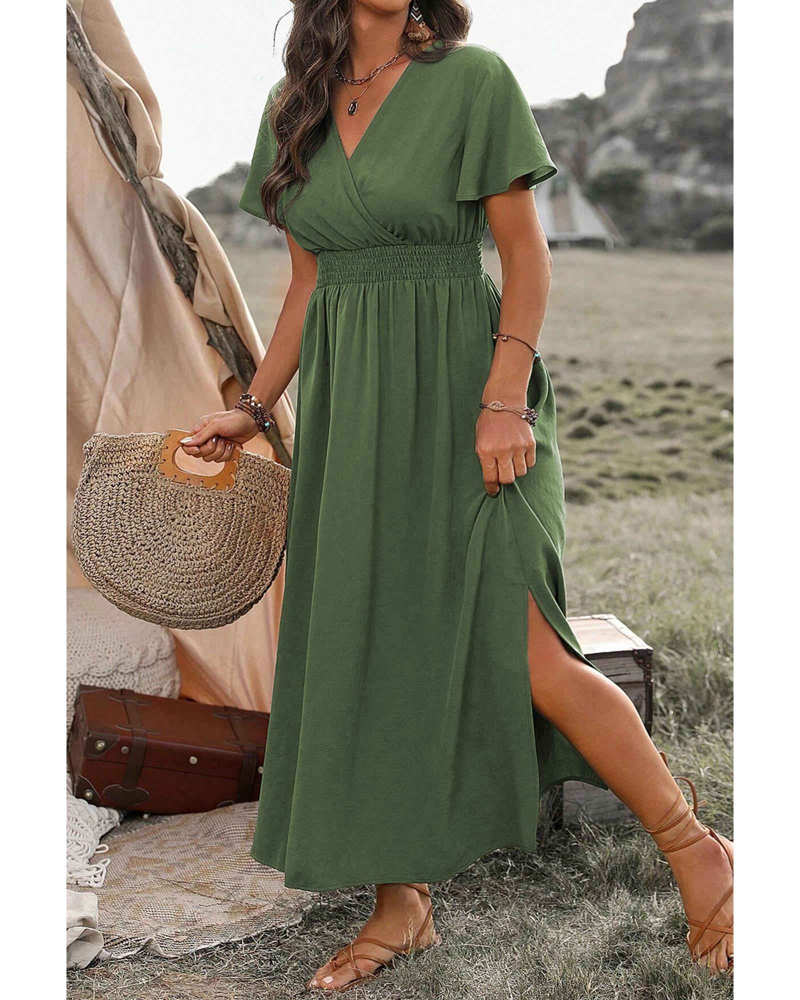 Four Leaf Clover Surplice Neckline Shirred High Waist Plus Size Maxi Dress – 2X
