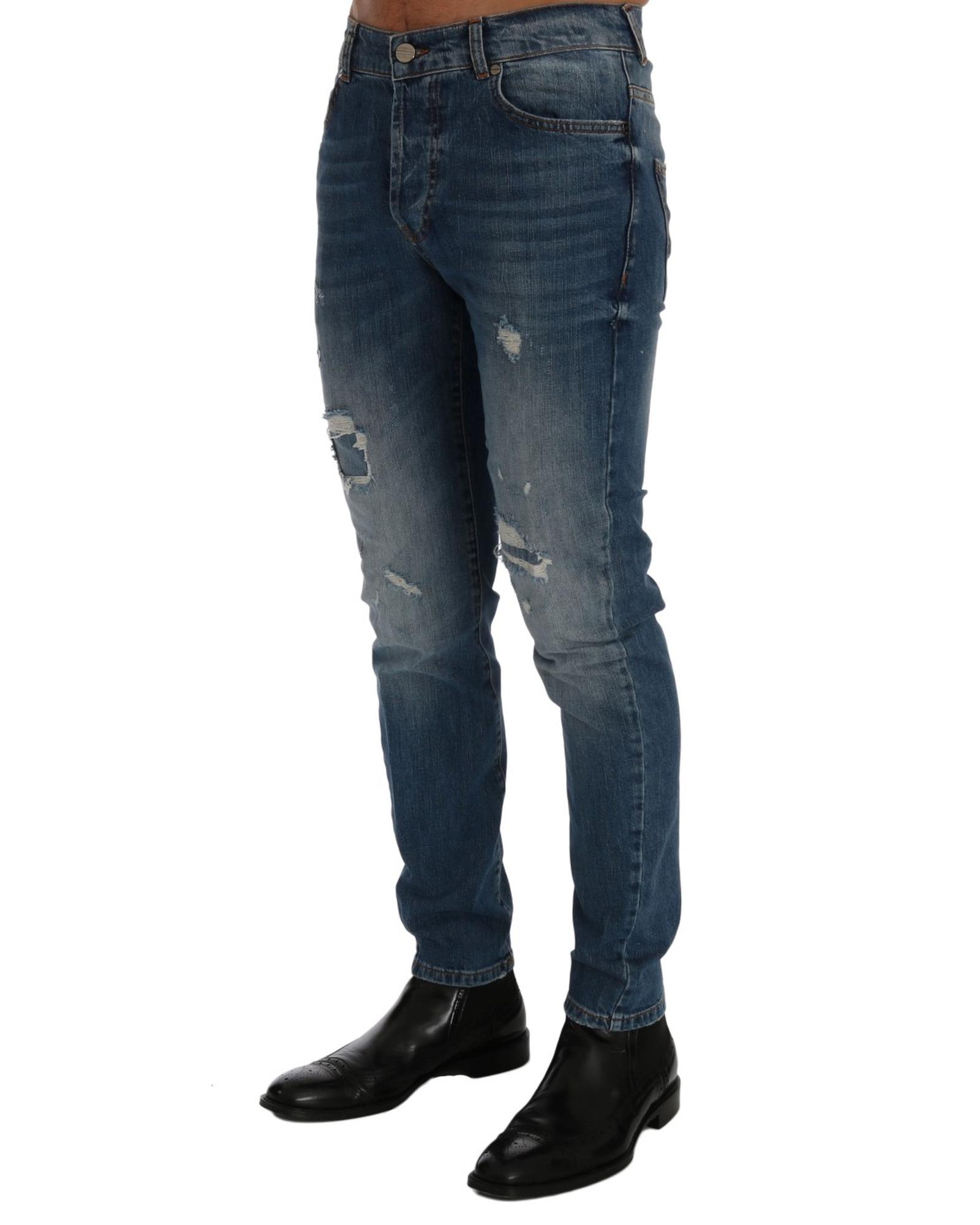 Frankie Morello Men’s Blue Wash Torn Dunfermile Slim Fit Jeans – W36 US