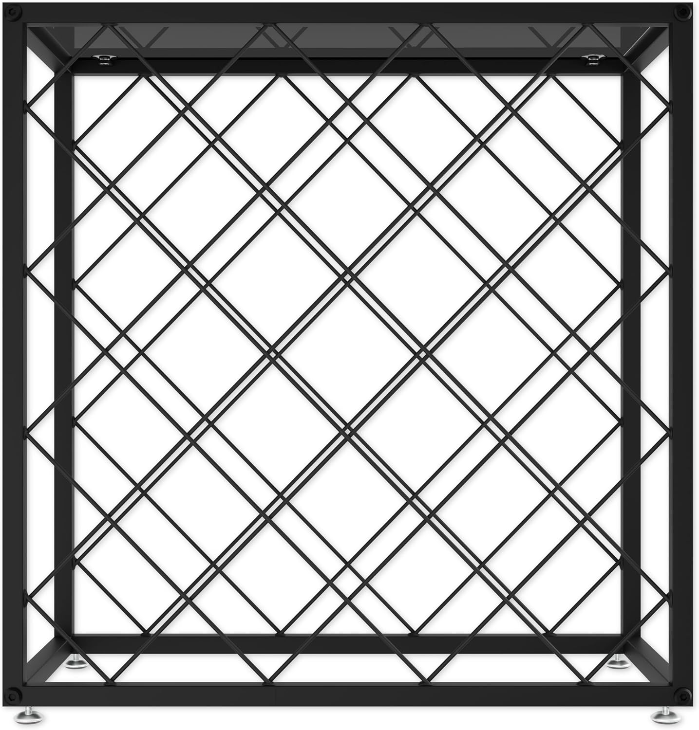 This freestanding metal wine rack provides a stylish and functional solution for storing and displaying up to 25 wine bottles. Its horizontal design helps keep corks moist, preserving the wine’s flavor and quality. The rack features a modern, sleek appearance that complements various interior styles and spaces.
