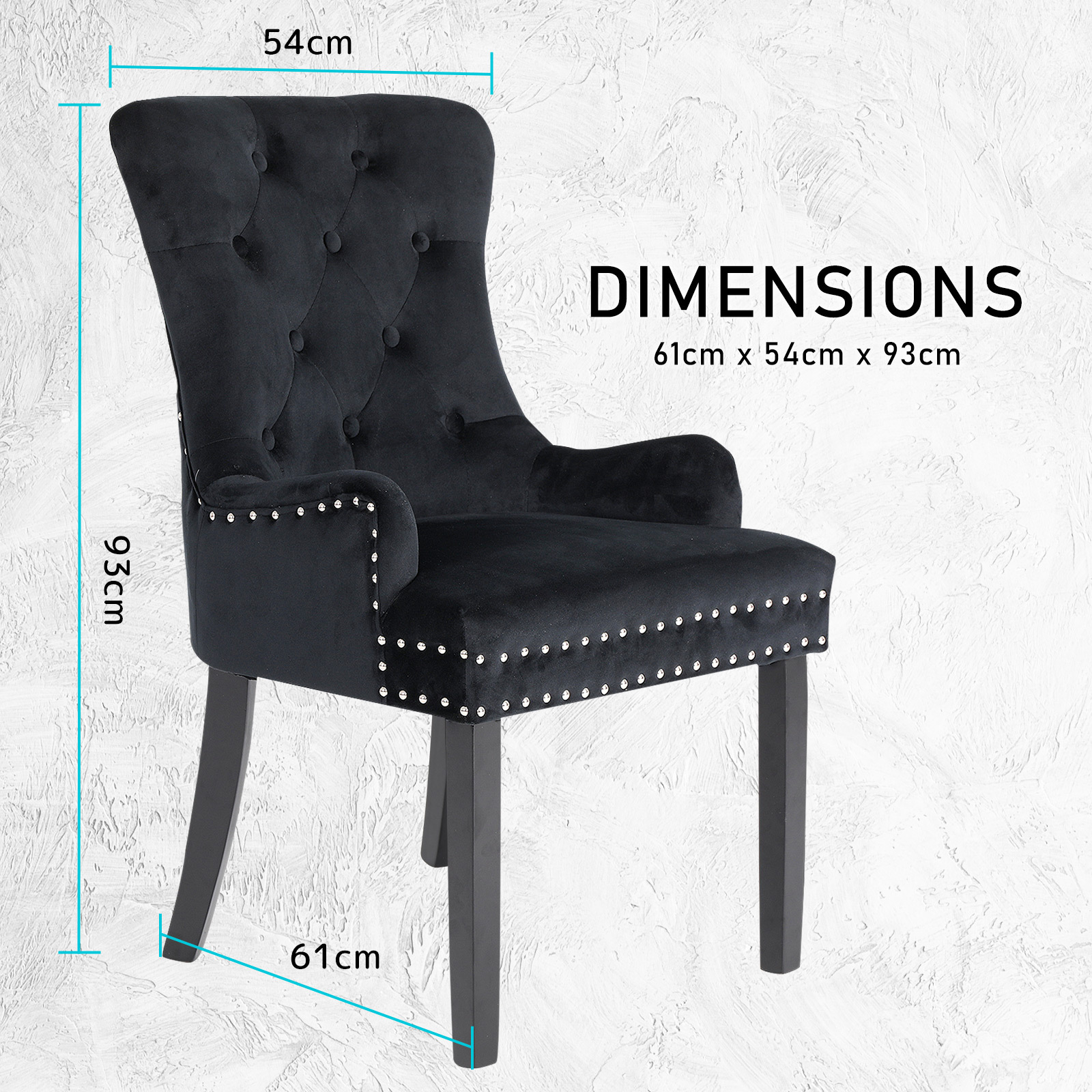 French Provincial Dining Chair Ring Studded Velvet Rubberwood Leg LISSE BLACK