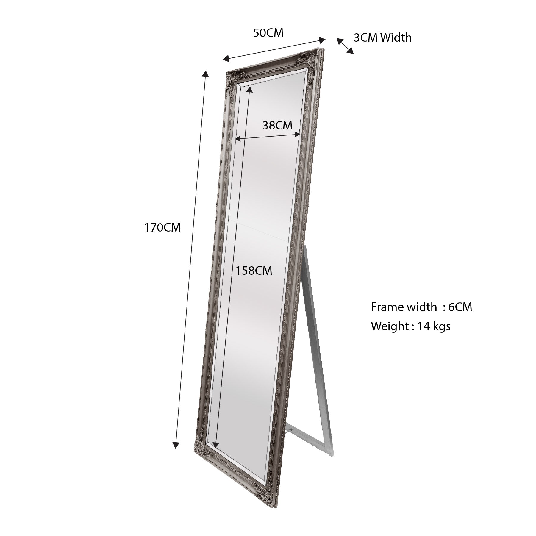 French Provincial Ornate Mirror – Antique Silver – Free Standing 50cm x 170cm