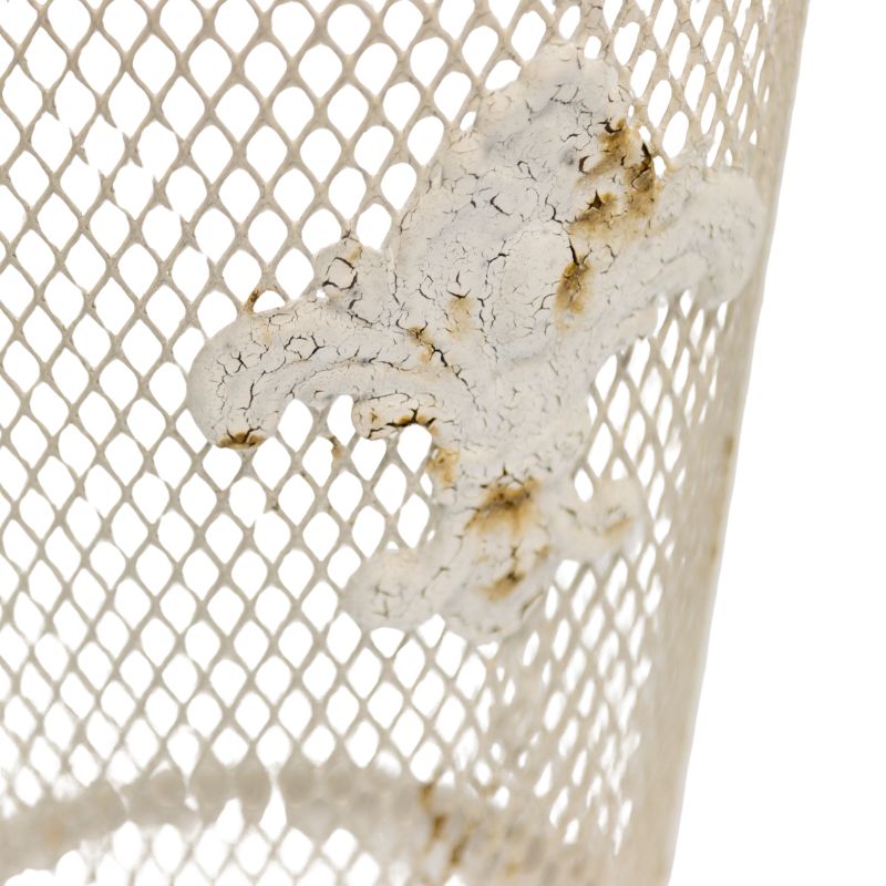 This elegant dry-flower vase features a classic Fleur-De-Lis design, adding a touch of sophistication to your home decor. Its timeless style and neutral distressed white finish make it a versatile piece suitable for various interior settings.