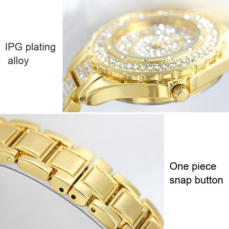 This full diamond women’s watch features a sleek design with a mineral tempered glass mirror, alloy strap, and a conjoined hidden buckle. It offers a combination of elegance and practicality with its life waterproof capability and precise quartz movement. The watch is suitable for daily wear, providing a stylish accessory with reliable performance.