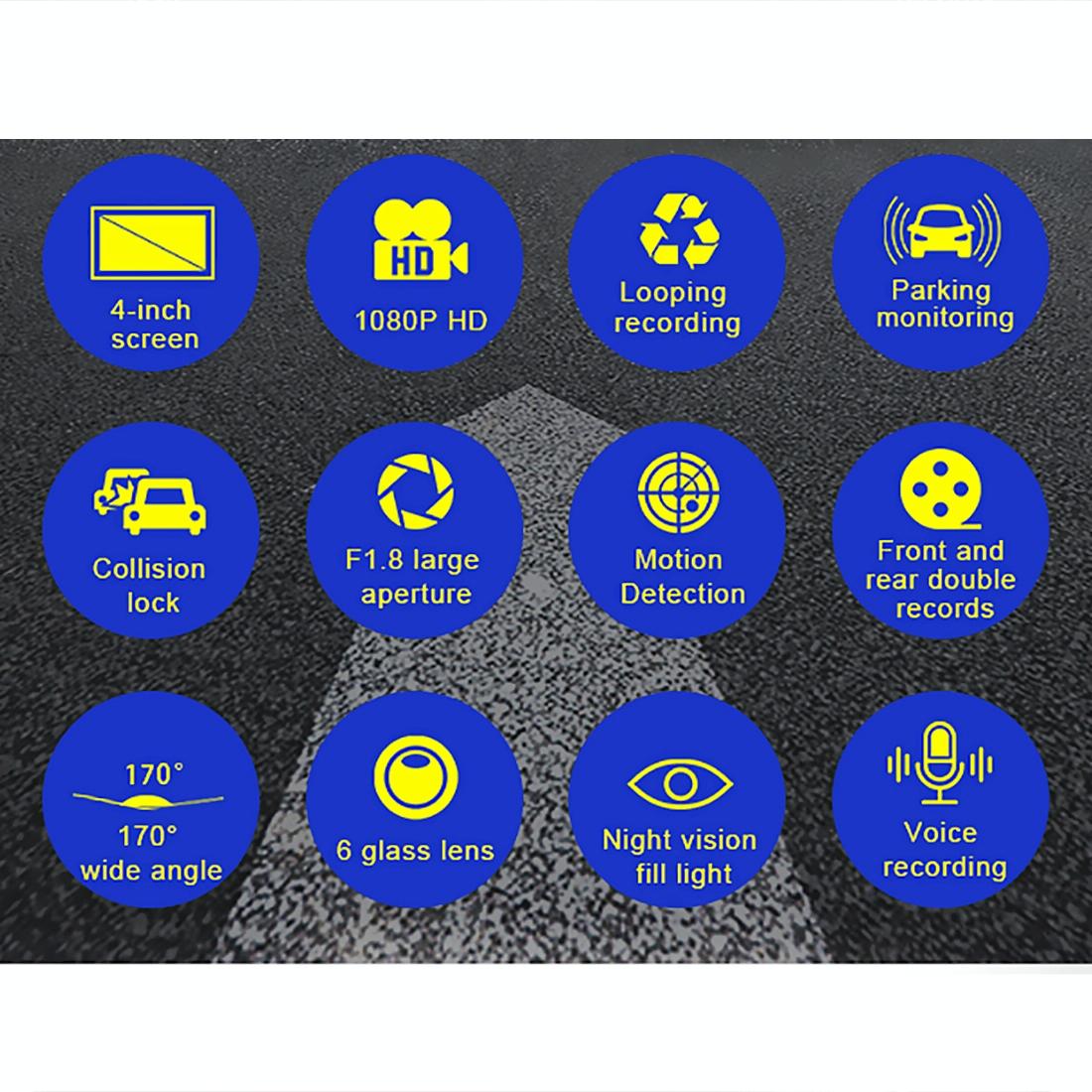 Includes a 4-inch screen car DVR with a 170-degree wide-angle lens capable of full HD 1080p recording. The package contains one unit of the specified model.