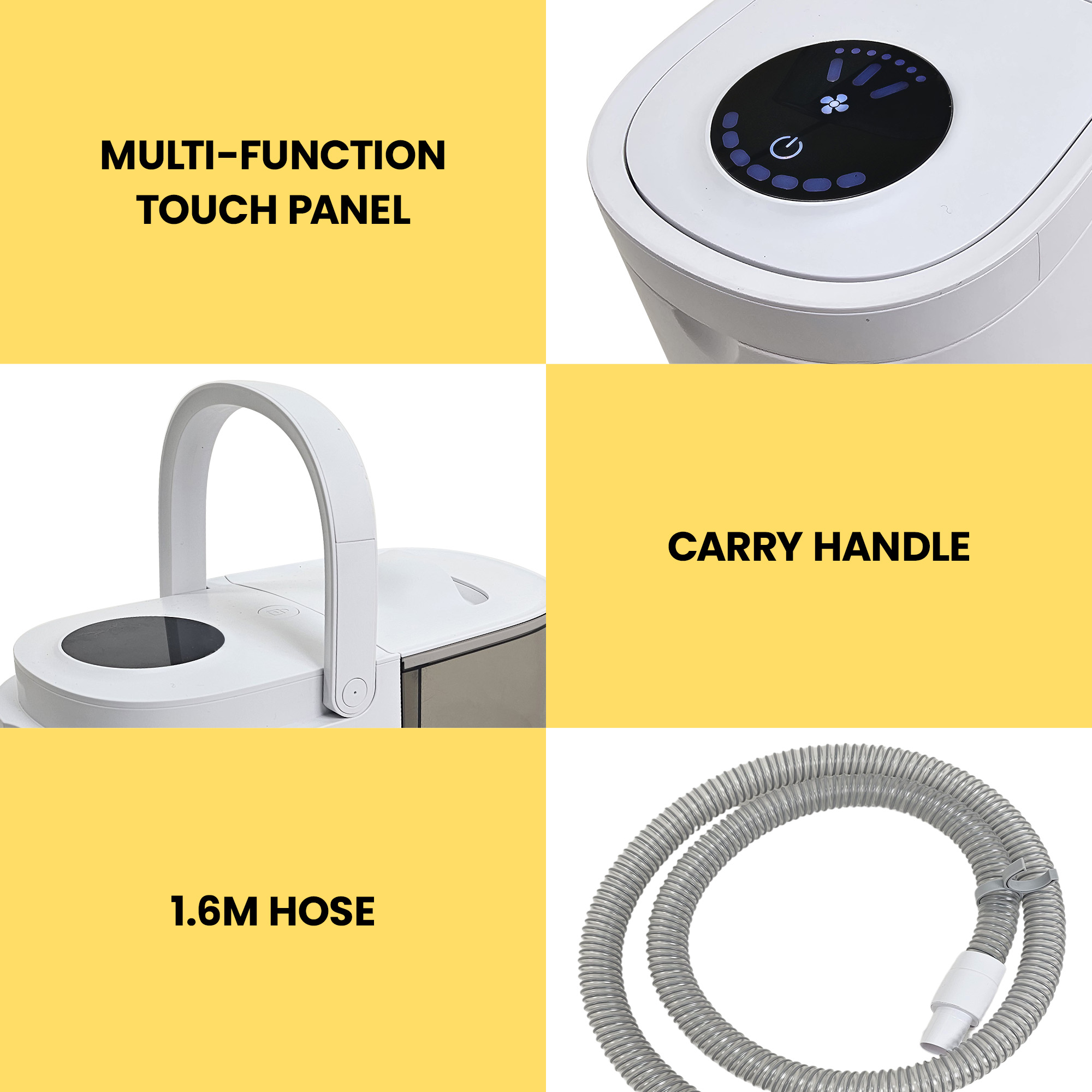 This all-in-one pet grooming kit combines trimming and vacuuming functions to provide a clean and efficient grooming experience for your pets. It features multiple attachments for various grooming needs, a digital touch panel for easy control, and a large capacity dust bin suitable for larger breeds. The device is designed to keep the grooming environment hygienic with its advanced filtration system and quiet operation mode.