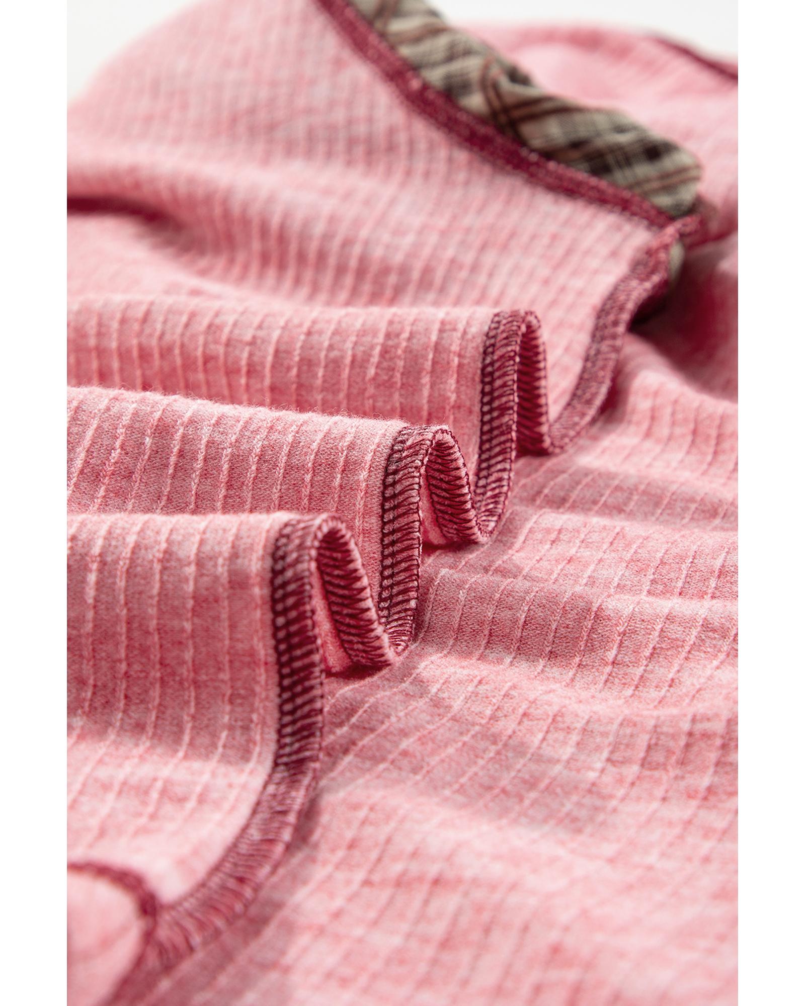 This blouse features a trendy fitted design with a unique mixed print and elegant patchwork. The cozy ribbed fabric ensures breathability, making it perfect for casual wear.
