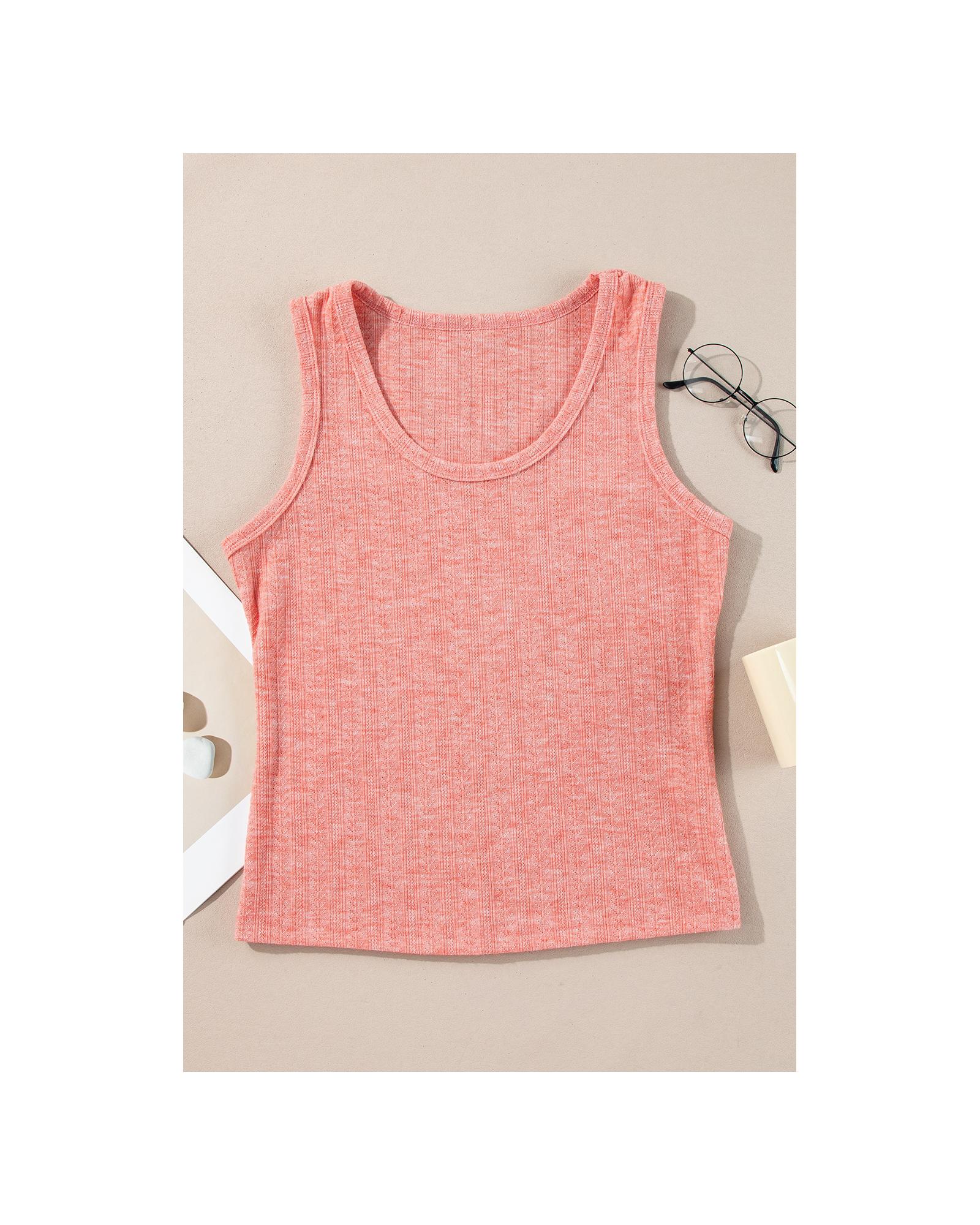 This solid color textured tank top features a stylish U neckline that highlights the collarbone. Made from a comfortable, high-elasticity fabric, it offers a slim fit suitable for various outfits. The textured material adds visual and tactile interest, making it a versatile addition to your wardrobe.