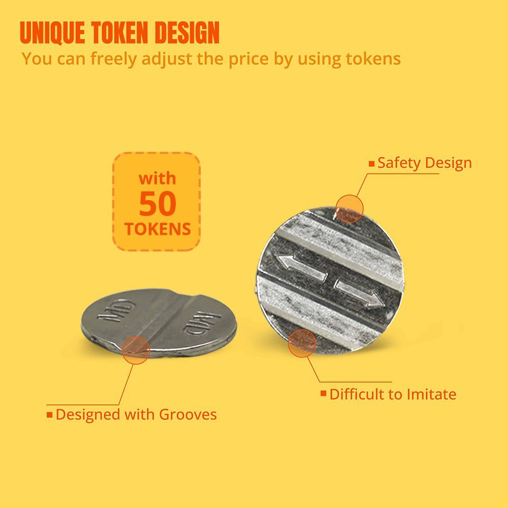 - Token-operated with adjustable acceptance for 1 to 4 tokens