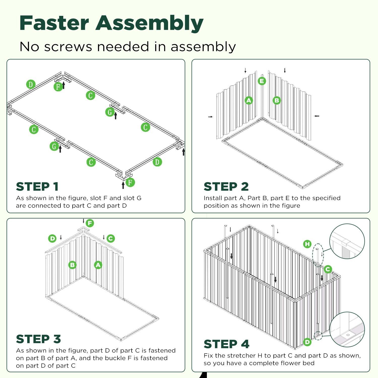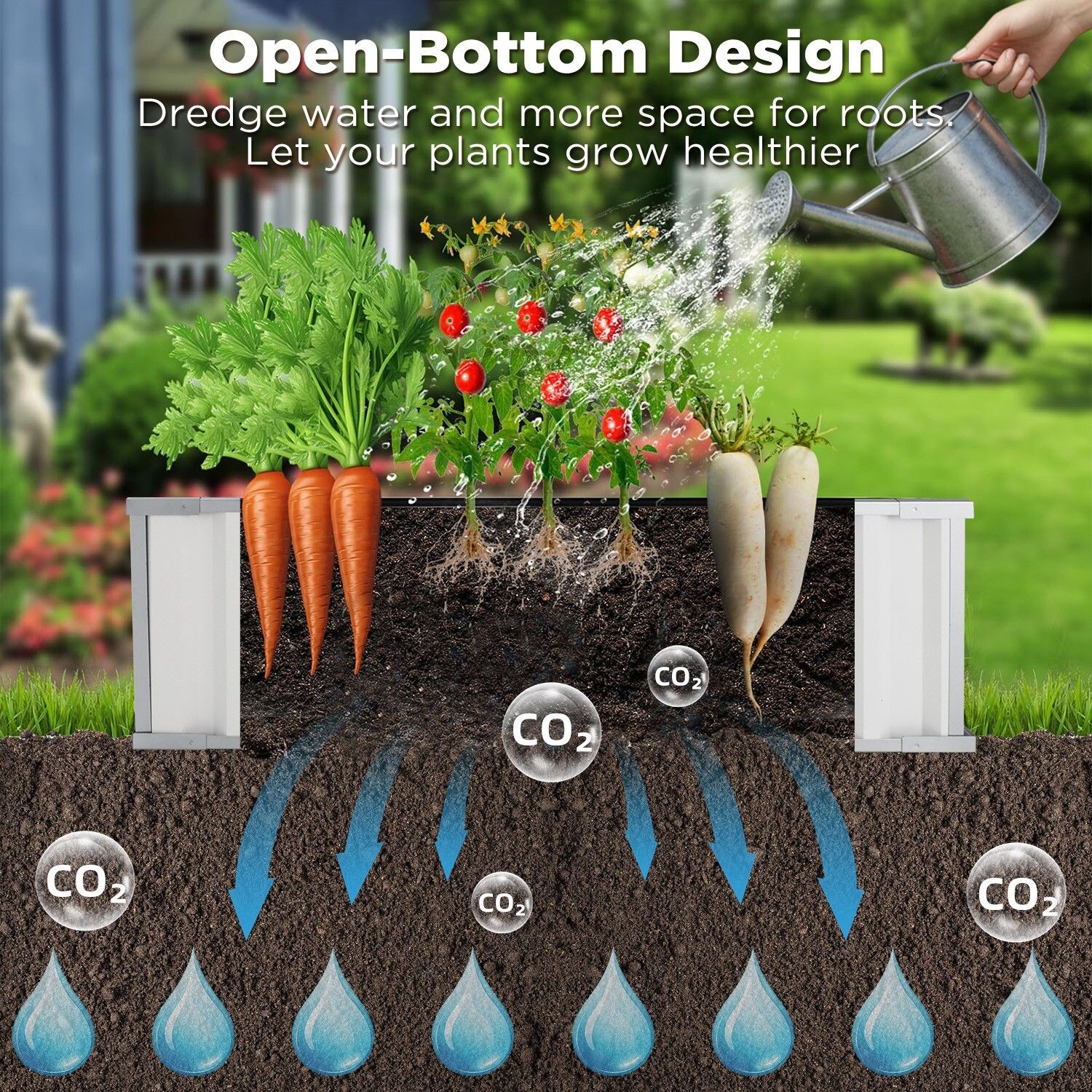 This raised garden bed is made from galvanised steel, offering a durable and rustproof structure suitable for outdoor gardening. Its no-screw, snap-together design allows for quick and easy assembly without tools. The oval shape and rounded edges ensure safety for users and pets, while the deep planting space provides ample room for root vegetables and multiple soil layers. The design also promotes efficient drainage to keep plants healthy in various climates.