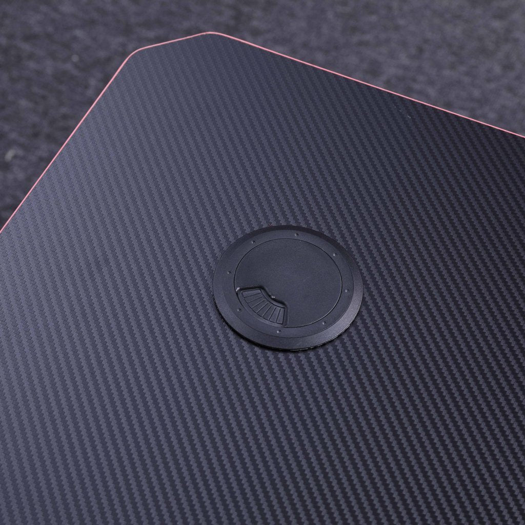This gaming desk offers a spacious tabletop designed for gaming enthusiasts. The surface features a smooth, textured finish that enhances its aesthetic appeal. Its ergonomic design allows for a comfortable gaming experience, while the sturdy construction ensures stability and durability. The desk is equipped with K-shaped legs that provide high load-bearing capacity and stability, making it suitable for various gaming setups and office use.