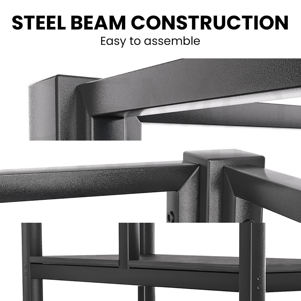 Gaming Loft Bed with Desk, Steel Metal Frame, Space Saving Design, for Single Mattress, Matte Dark Grey