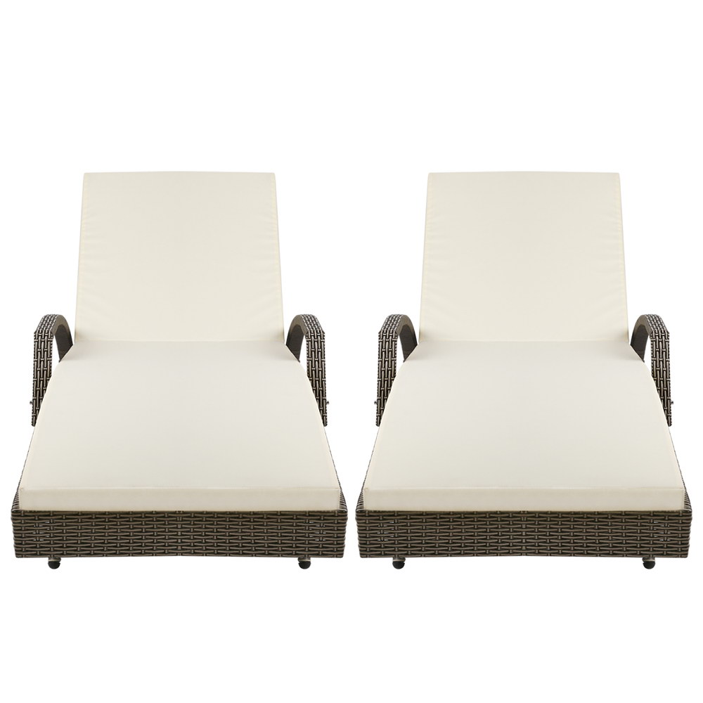 Gardeon 2PC Sun Lounge Wicker Lounger Outdoor Furniture Beach Chair Adjustable Cushion Grey&Beige