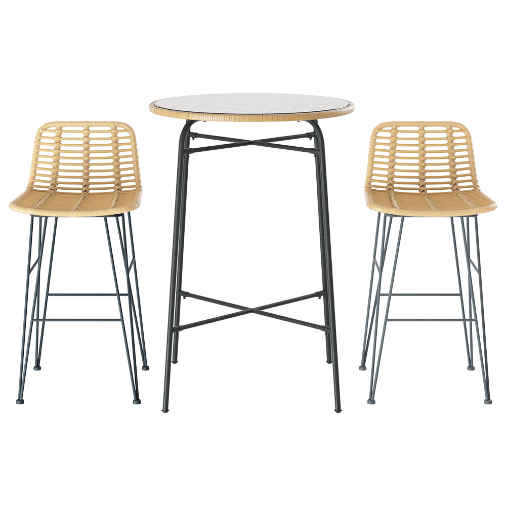 Gardeon 3-Piece Outdoor Bar Set Wicker Table Chairs Patio Bistro