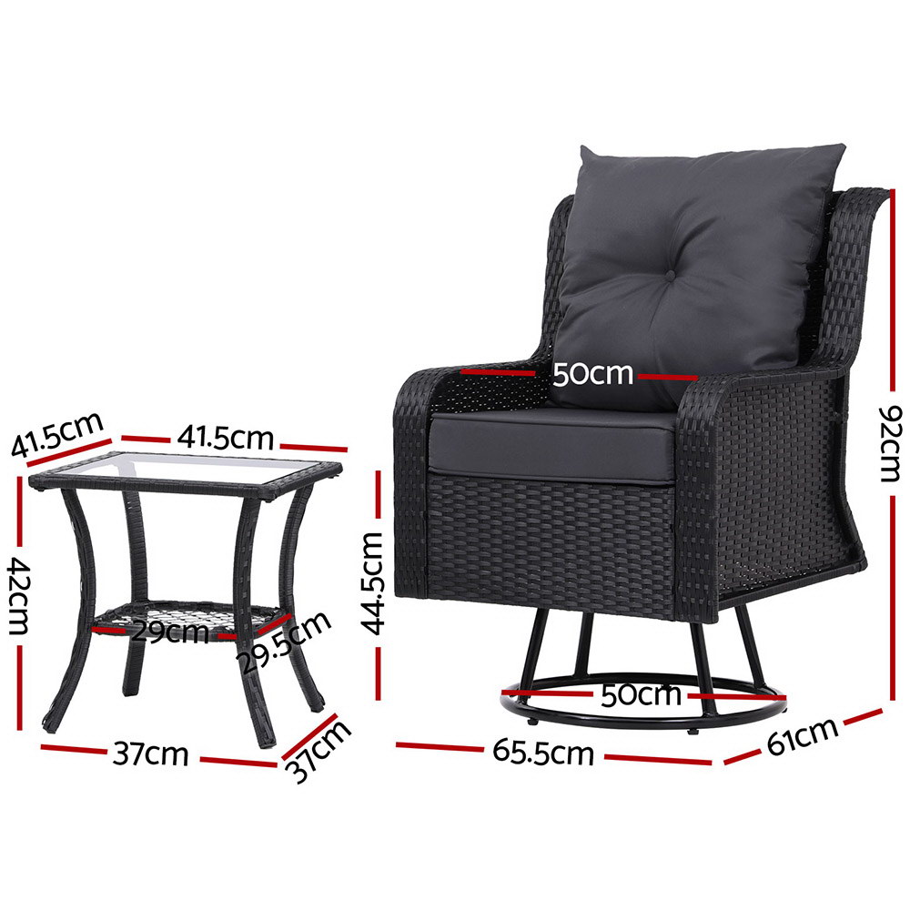 Gardeon 3PC Outdoor Furniture Bistro Set Lounge Wicker Swivel Chairs Table Cushion Black