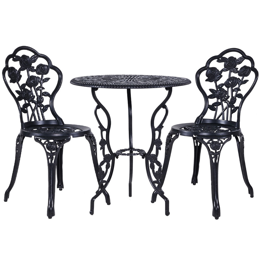 Gardeon 3PC Outdoor Setting Bistro Set Chairs Table Cast Aluminum Rose Black