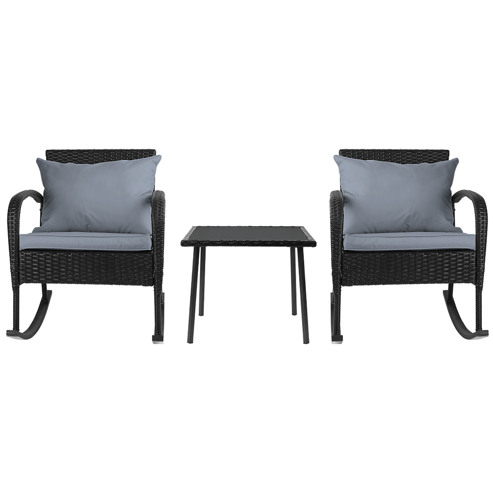 Gardeon 3PC Rocking Chair Table Wicker Outdoor Furniture Patio Bistro Set Black