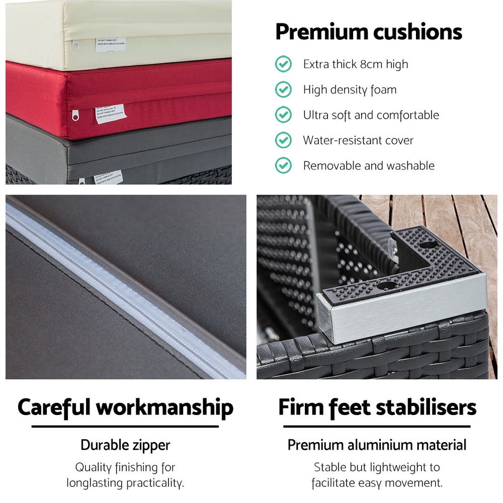 Gardeon 3PC Sun Lounge Wicker Lounger Outdoor Furniture Day Bed Rattan Garden