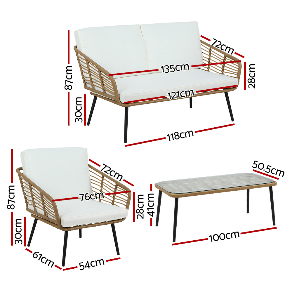 Gardeon 4-Piece Outdoor Sofa Set Rattan Lounge Setting Table Chairs
