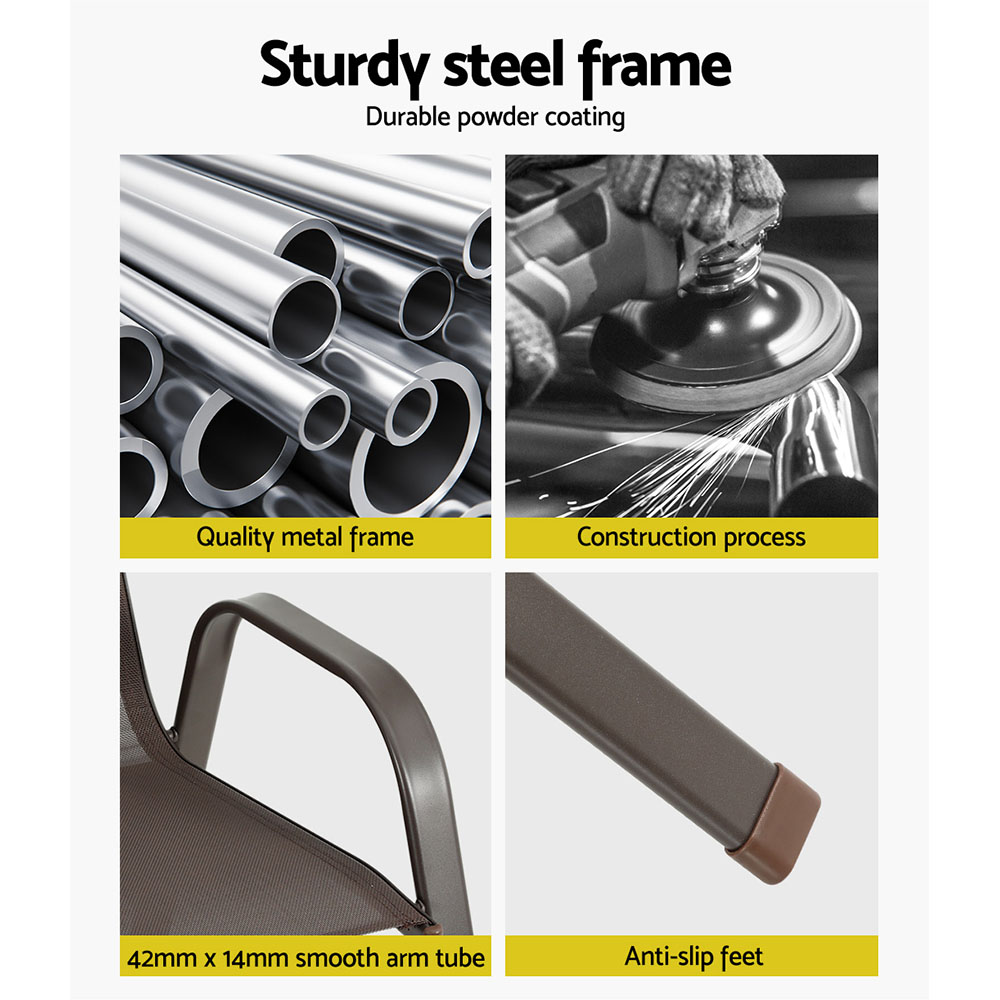Gardeon 6PC Outdoor Dining Chairs Stackable Lounge Chair Patio Furniture Brown