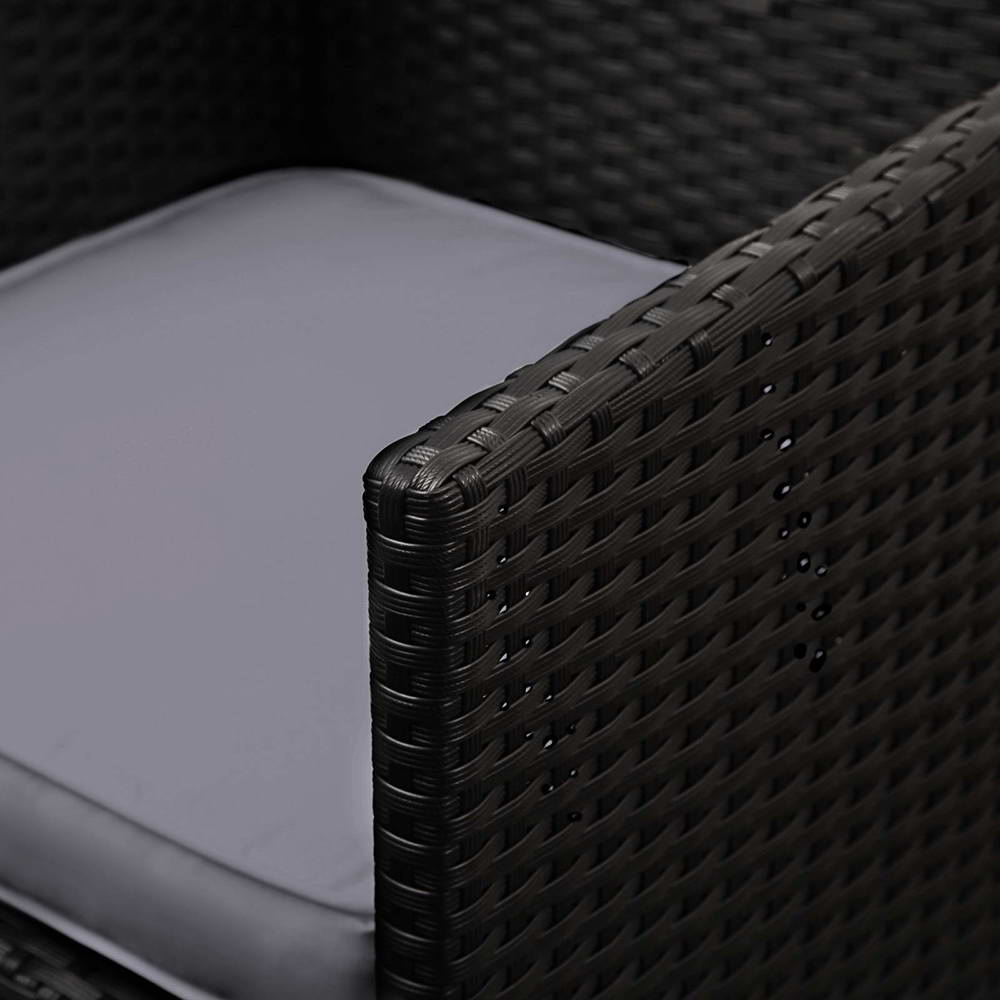 This outdoor dining set offers a stylish and affordable solution for enhancing your backyard space. Made with a powder-coated steel frame and UV-resistant PE wicker, it combines durability with attractive design. The set includes a tempered glass top table and comfortable, removable, and washable seat cushions. A water-resistant cover is provided for convenient storage during rainy days, and the individual seatings make it easy to set up for gatherings or parties.