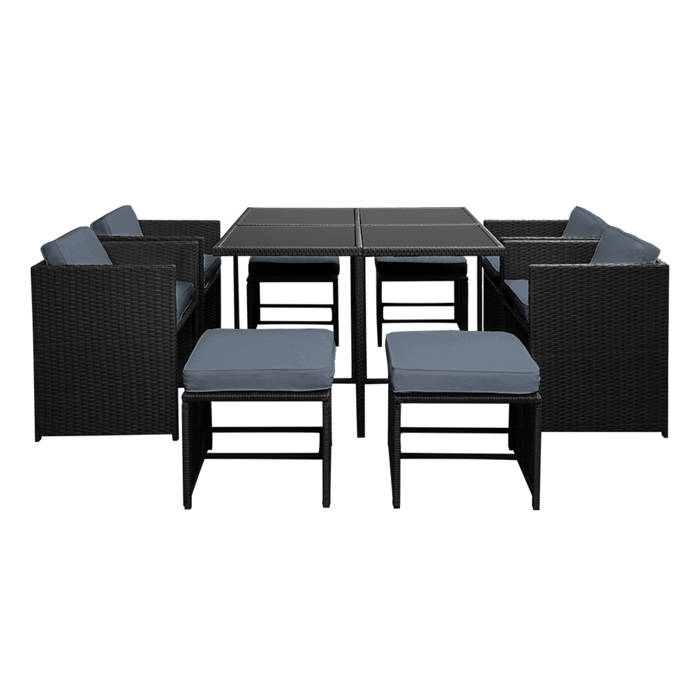 Gardeon Outdoor Dining Set 9 Piece Wicker Table Chairs Setting Black