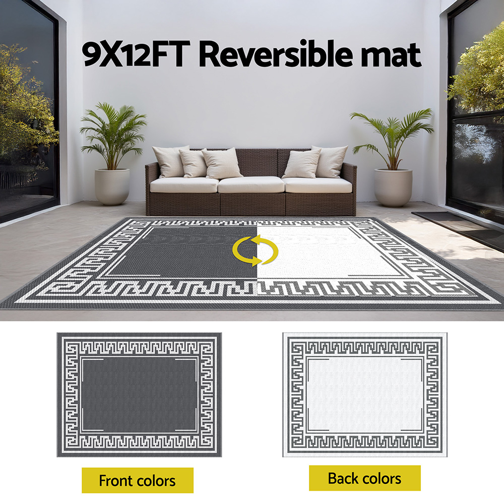 Gardeon Outdoor Rugs 274x366cm Large Carpet Reversible Area Mat PP Dual-Sided Patio Rug Greek Key