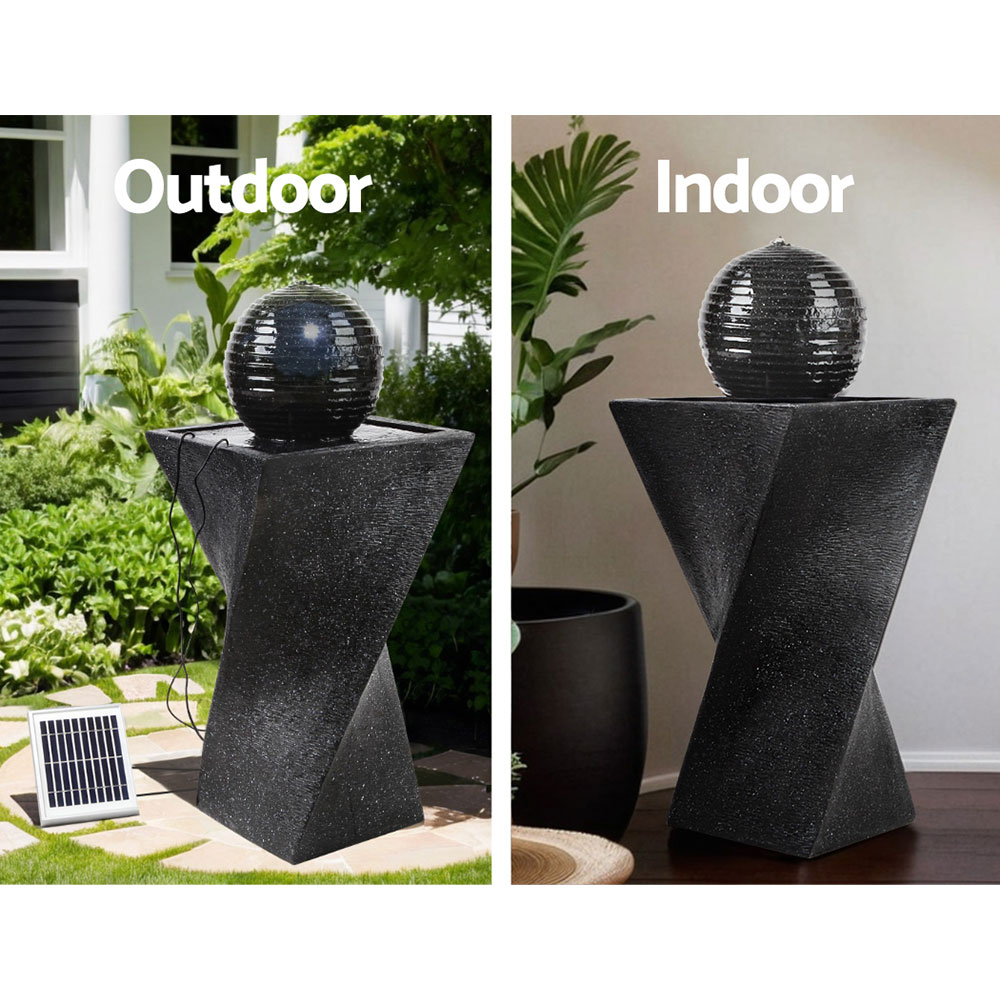 Gardeon Solar Water Feature Twisted Fountain LED Light Bird Bath 85CM Black