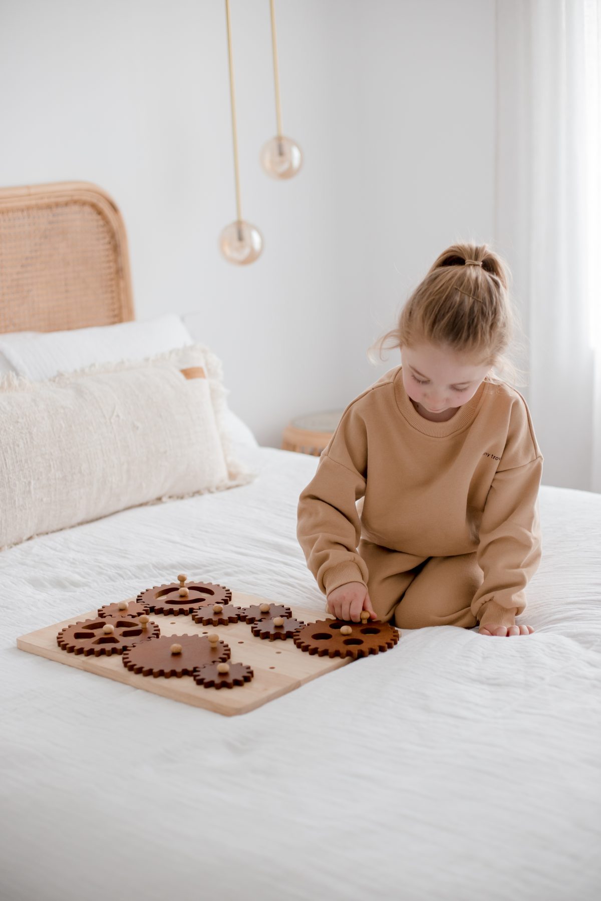 - Includes an interchangeable gear board for versatile configurations