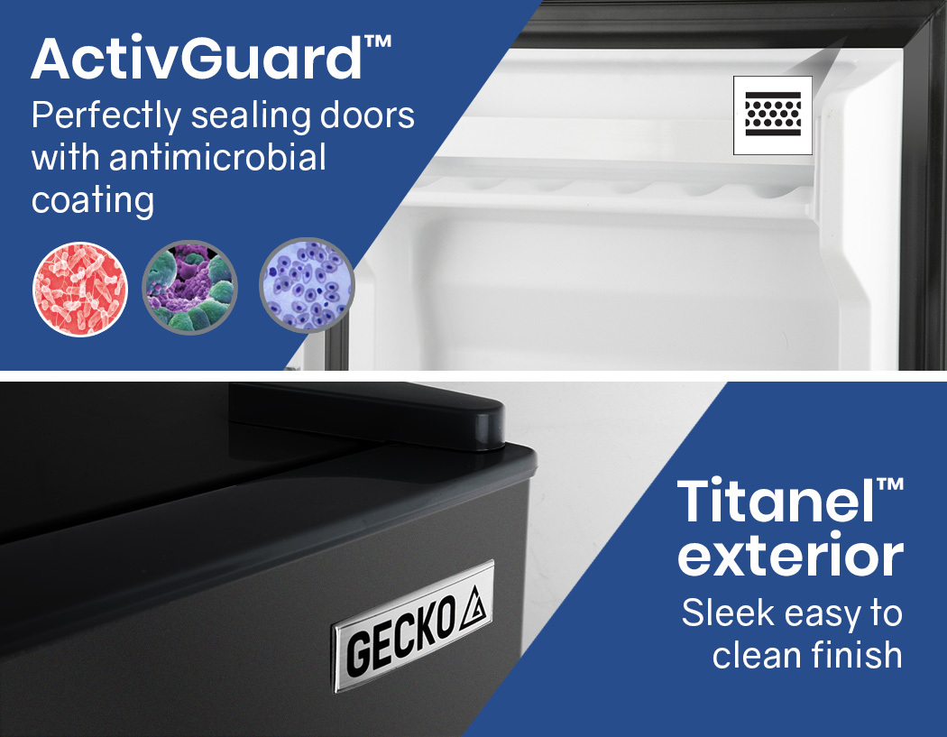 GECKO 95L Portable Upright Fridge, 12V/24V for Motorhome, Caravan, Black