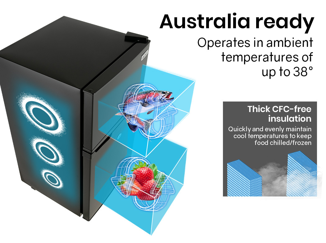 - Generous 95L capacity with separate freezer and refrigerator sections