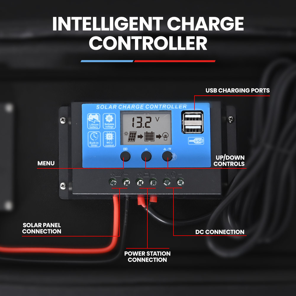 - Built-in intelligent charge controller with preset output voltages