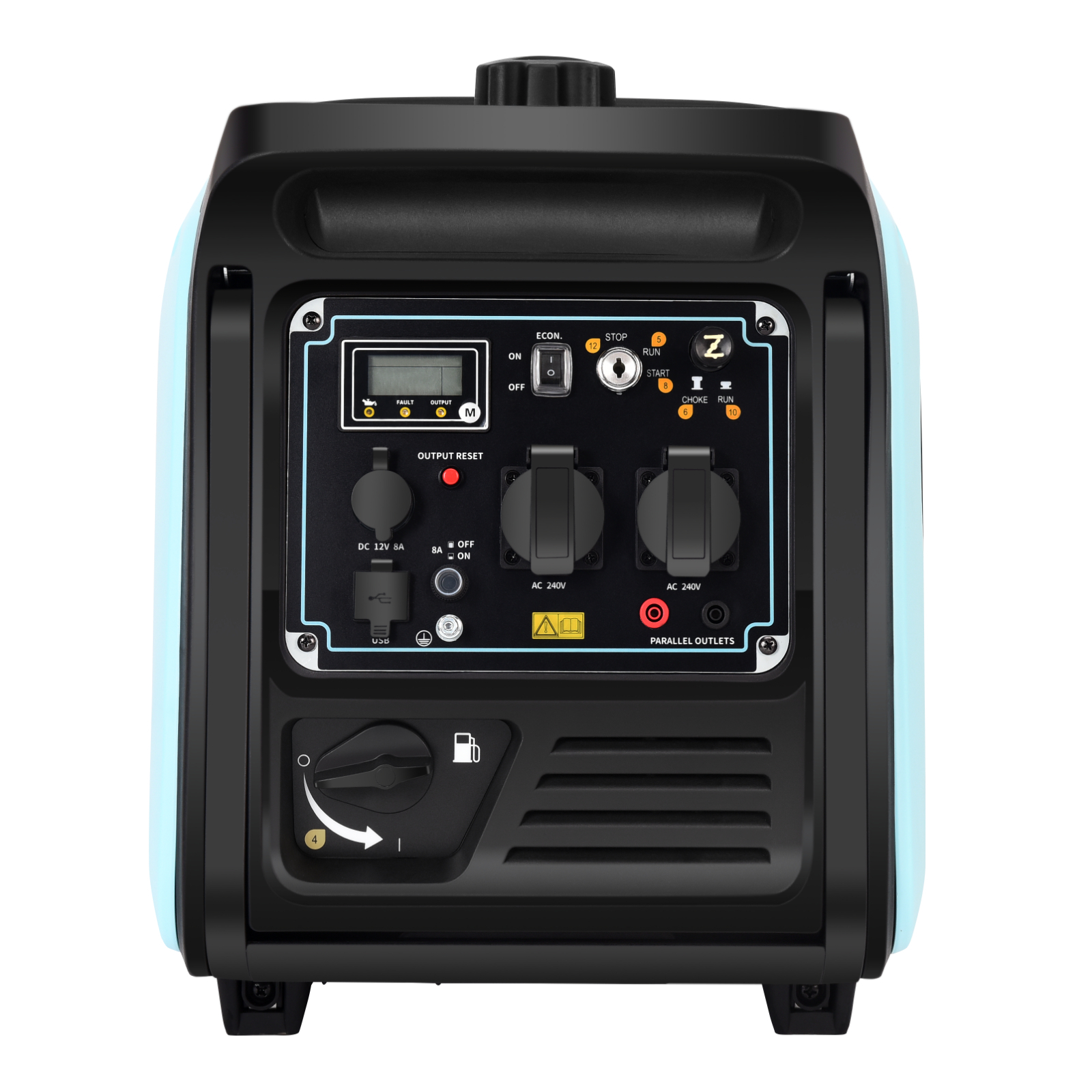 This inverter generator offers reliable power with a pure sine wave output, making it suitable for various applications such as camping or backup power at home. It features portability, easy monitoring, and the ability to connect in parallel for increased power needs. The unit is designed for convenience and efficiency, providing long operation times and user-friendly controls.