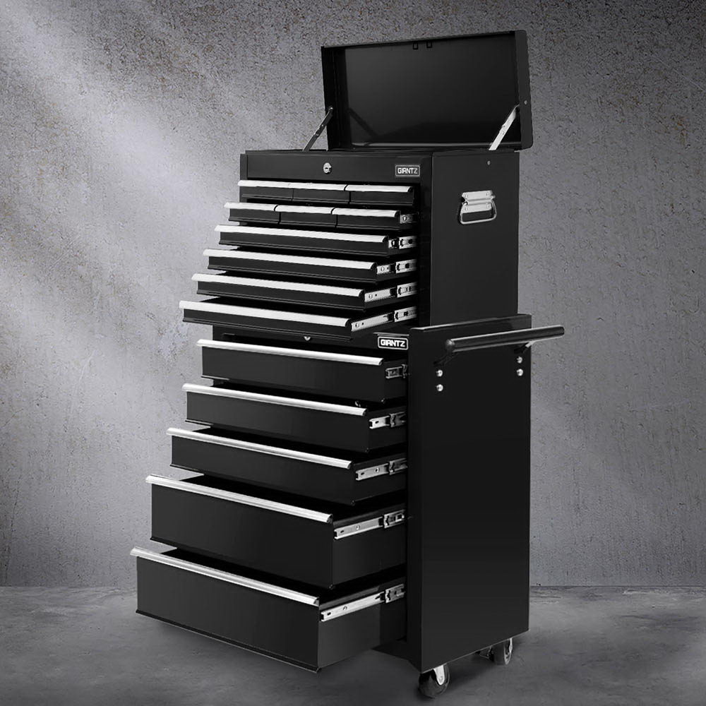 Giantz 15 Drawers Tool Chest Trolley Toolbox 2-in-1 Storage Black