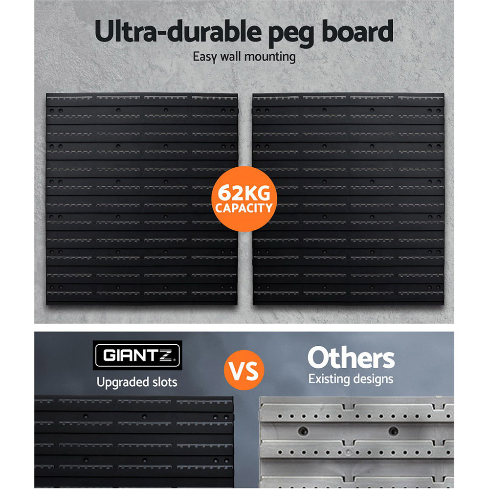 - Two impact-resistant peg boards with upgraded mounting slots for added stability