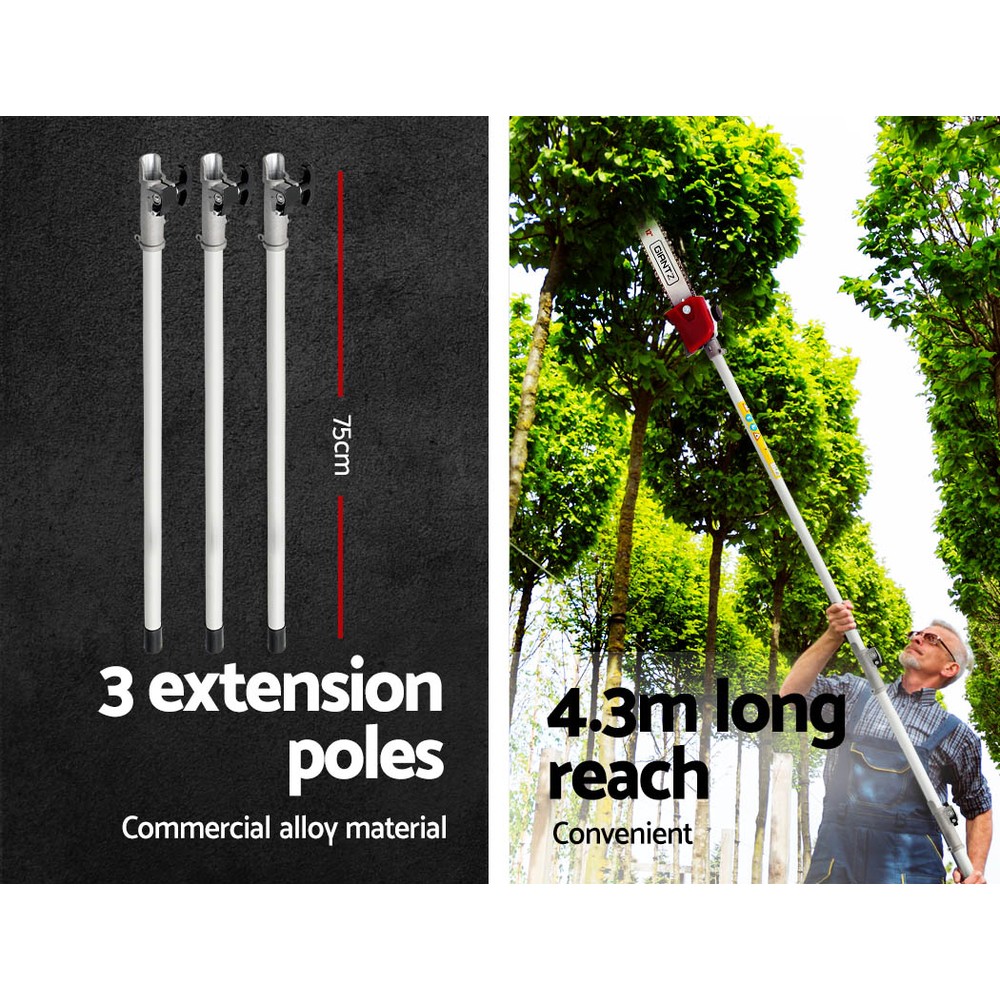Giantz 62CC Pole Chainsaw 12in Chain Saw Petrol 4.3m Long Reach Red