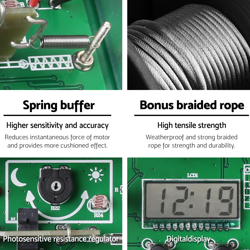 This automatic chicken coop door opener provides a convenient solution for managing chicken access and security. It operates automatically based on a timer and light sensor, adjusting for seasonal daylight changes. The durable construction includes an aluminum door and rails, a reliable motor, and a braided rope for strength. The system features a spring buffer to cushion door movement, a digital display for monitoring, and a weatherproof enclosure for outdoor use. Powered by batteries, it includes a low battery warning for easy maintenance and all necessary mounting hardware for quick installation.
