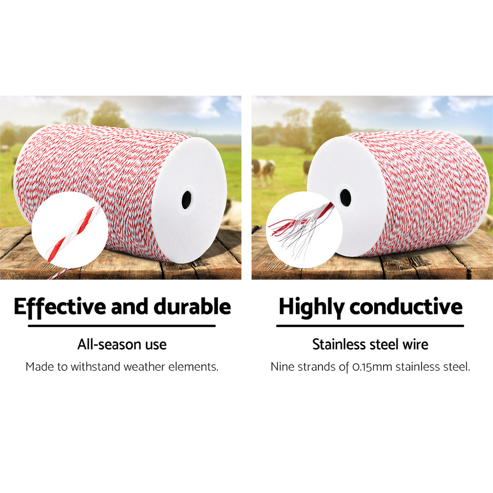This electric fence poly wire is designed to enhance visibility and ensure the safety of pets and livestock. Made with durable materials, it provides a reliable fencing solution that helps prevent accidental contact and keeps animals contained within designated areas.