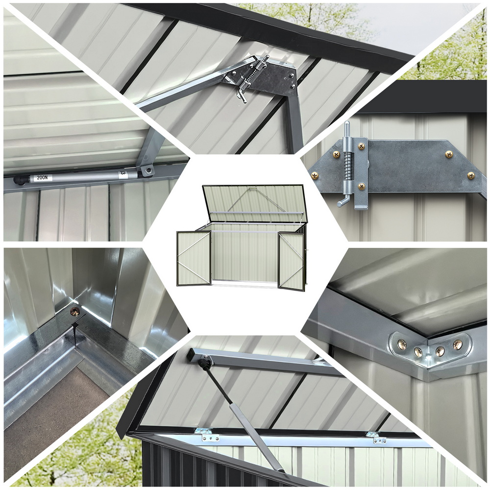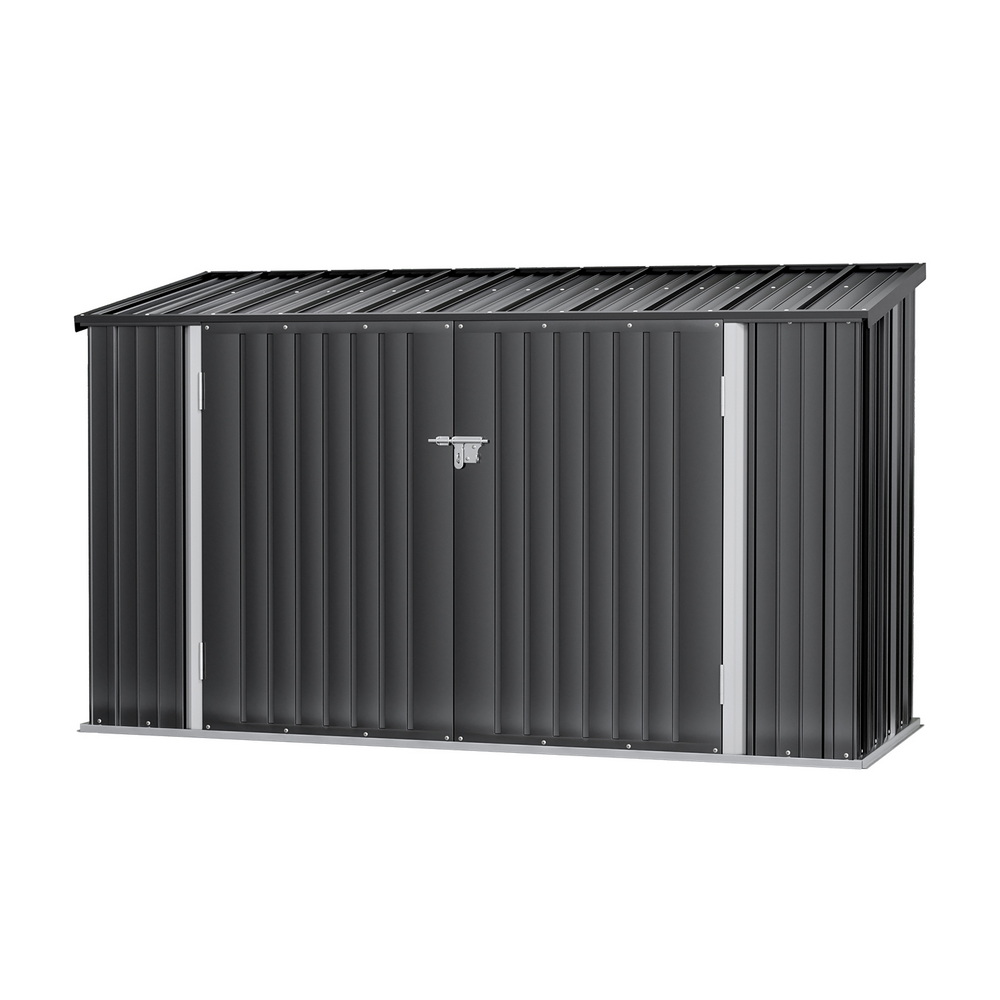 This outdoor bike shed offers a durable and secure storage solution for your outdoor equipment. Constructed from galvanized steel with a sloped roof design, it effectively sheds rain and debris, ensuring a maintenance-free and corrosion-resistant structure. The double doors provide full-width access, accommodating up to three adult bicycles, and can be locked for added security. Its neutral grey finish allows it to blend seamlessly into any backyard setting.