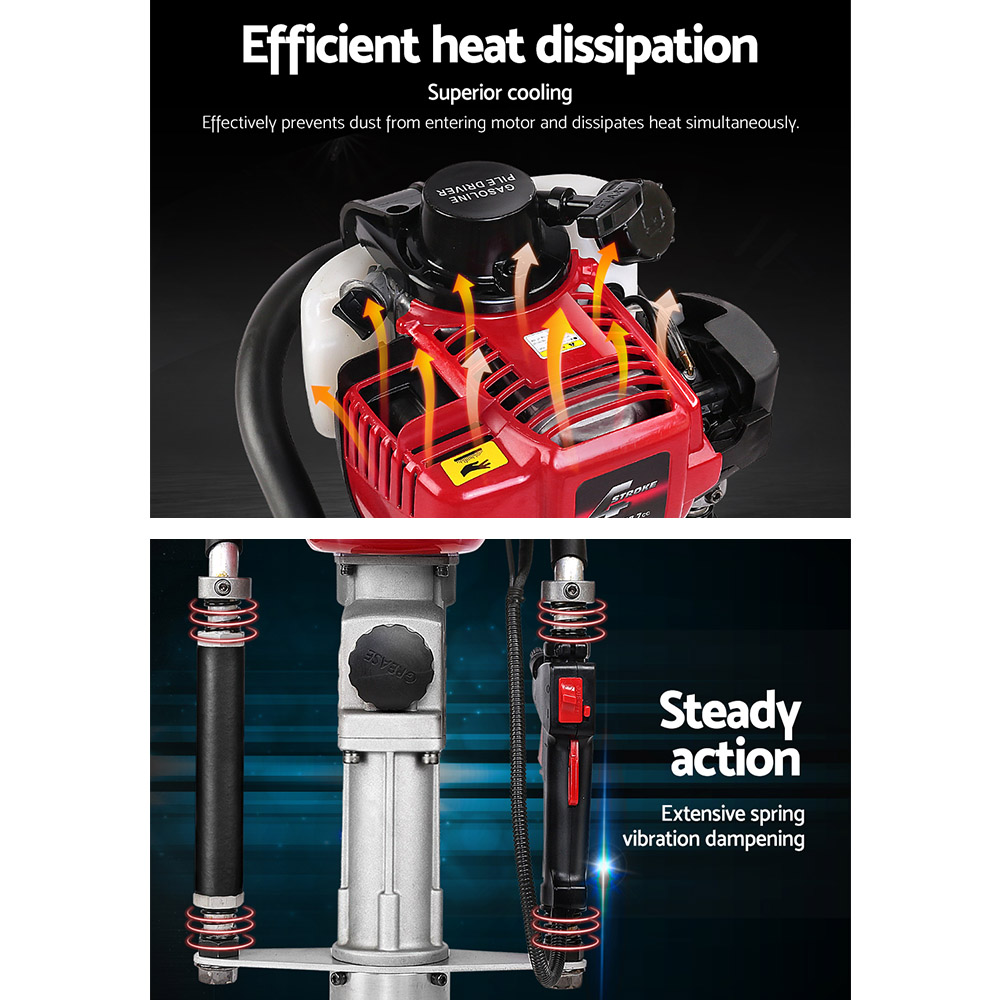 Giantz Petrol Post Driver 38CC 4-Stroke Rammer Pile Star Picket Fence Hole Drive Red