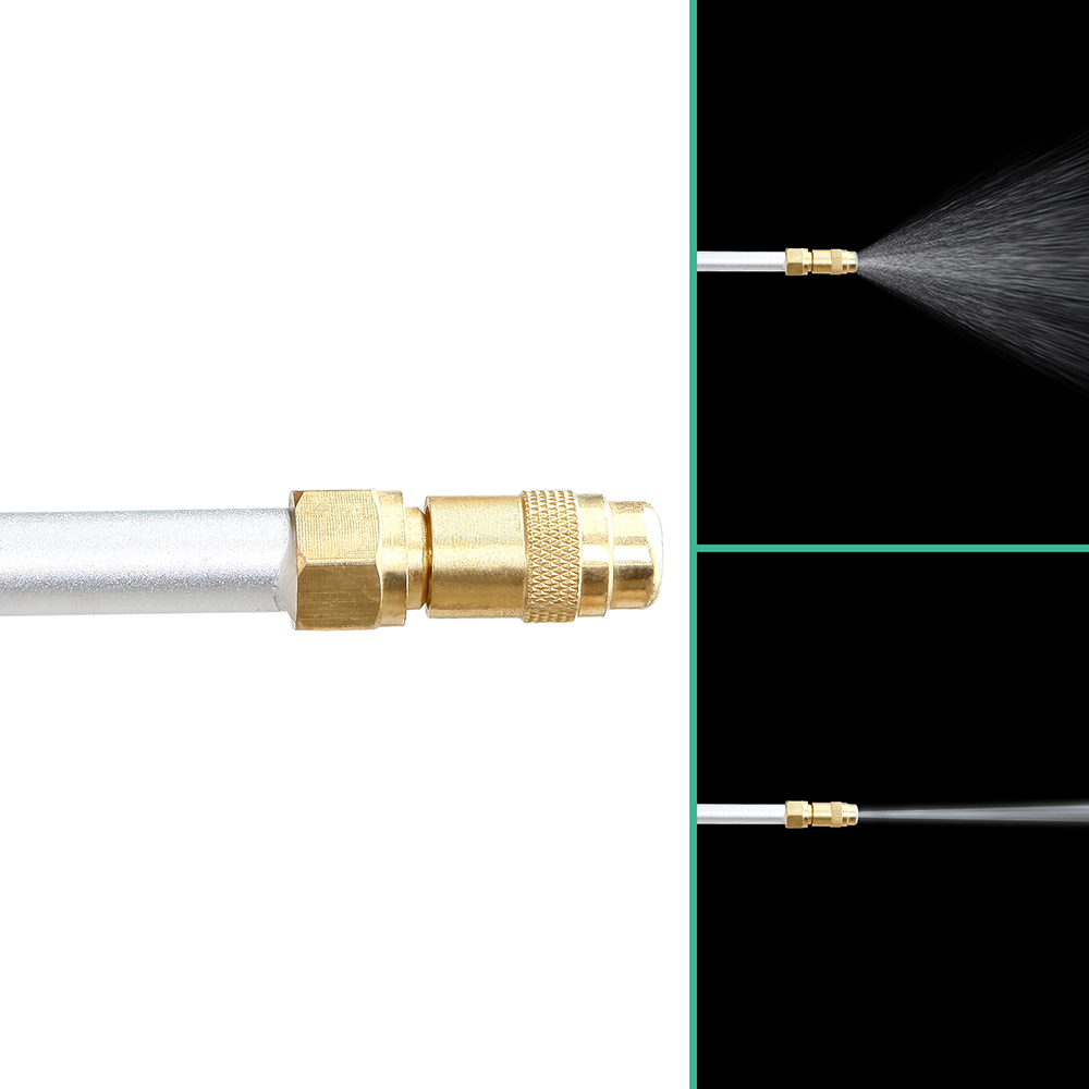 - Spray nozzles: 4 on the boom, adjustable between stream and jet