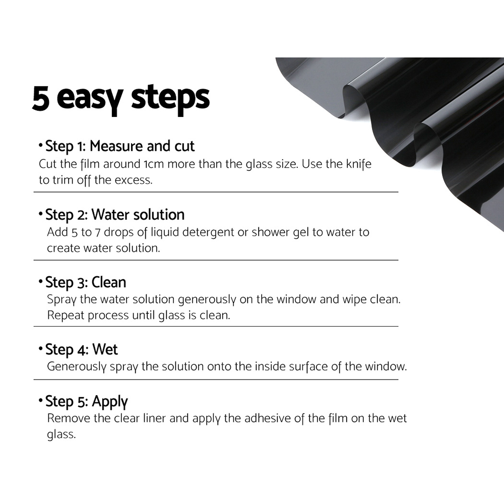 Giantz Window Tint Film Black Roll 15% VLT Home House 76cm X 7m Tinting Tools