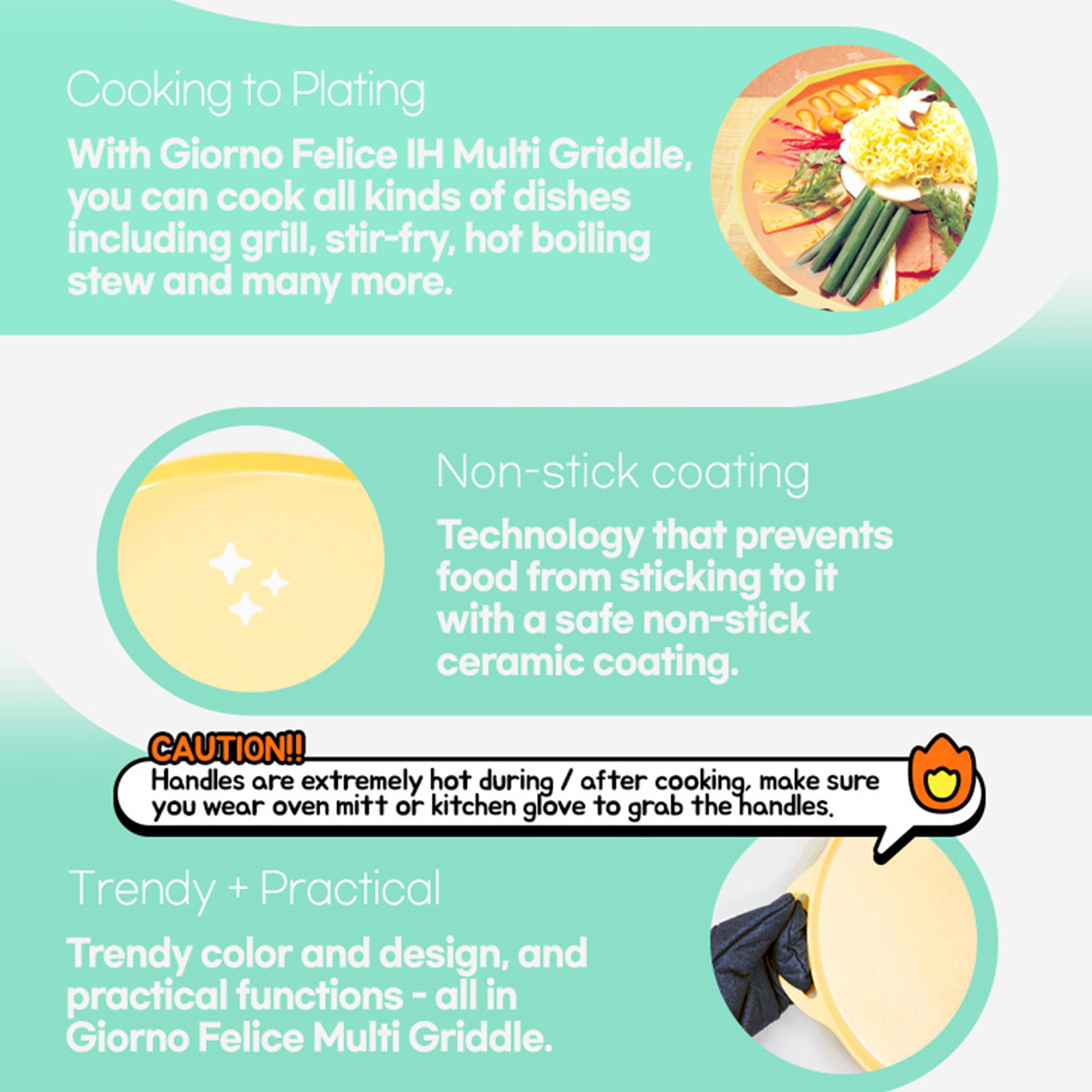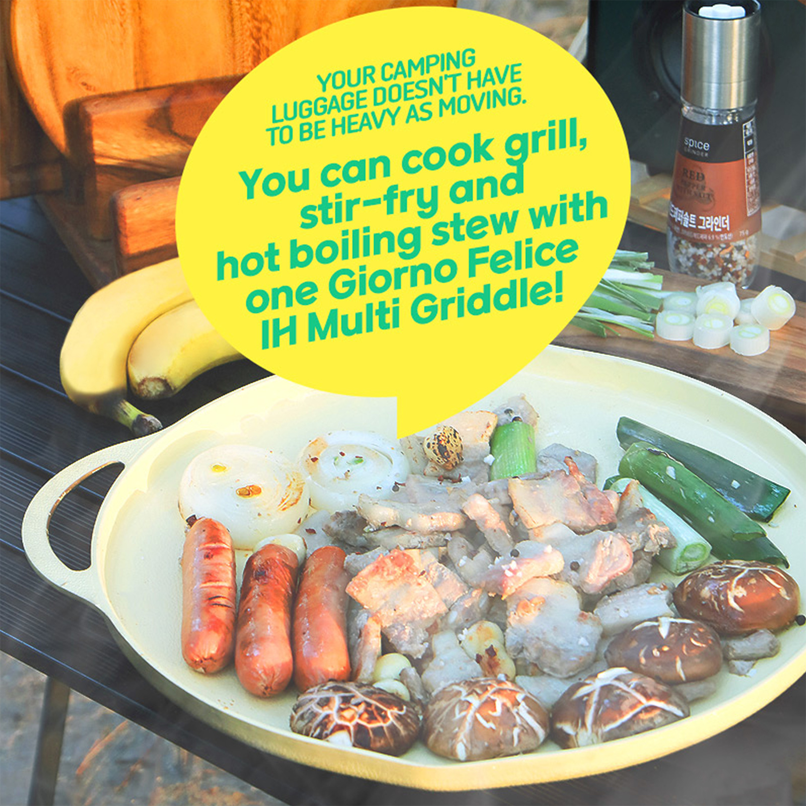 Giorno Felice IH Griddle Pan 34cm Round Ceramic Non-Stick Camping Korean Stew