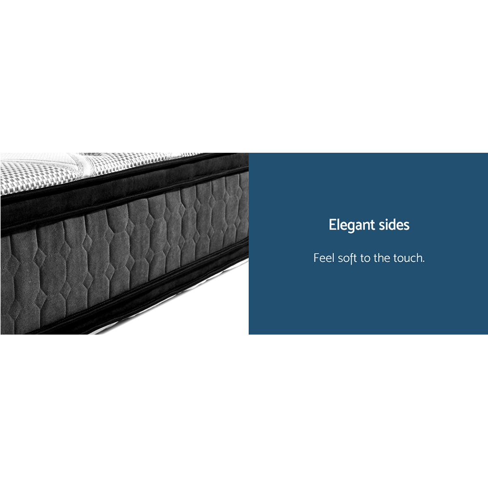 This mattress offers a luxurious sleeping experience with a 36cm thickness, combining innovative sleep technology and high-quality materials. It features a double-sided design with different firmness options, providing customizable comfort. The mattress is designed to support restful sleep while maintaining hygiene and allergen resistance.