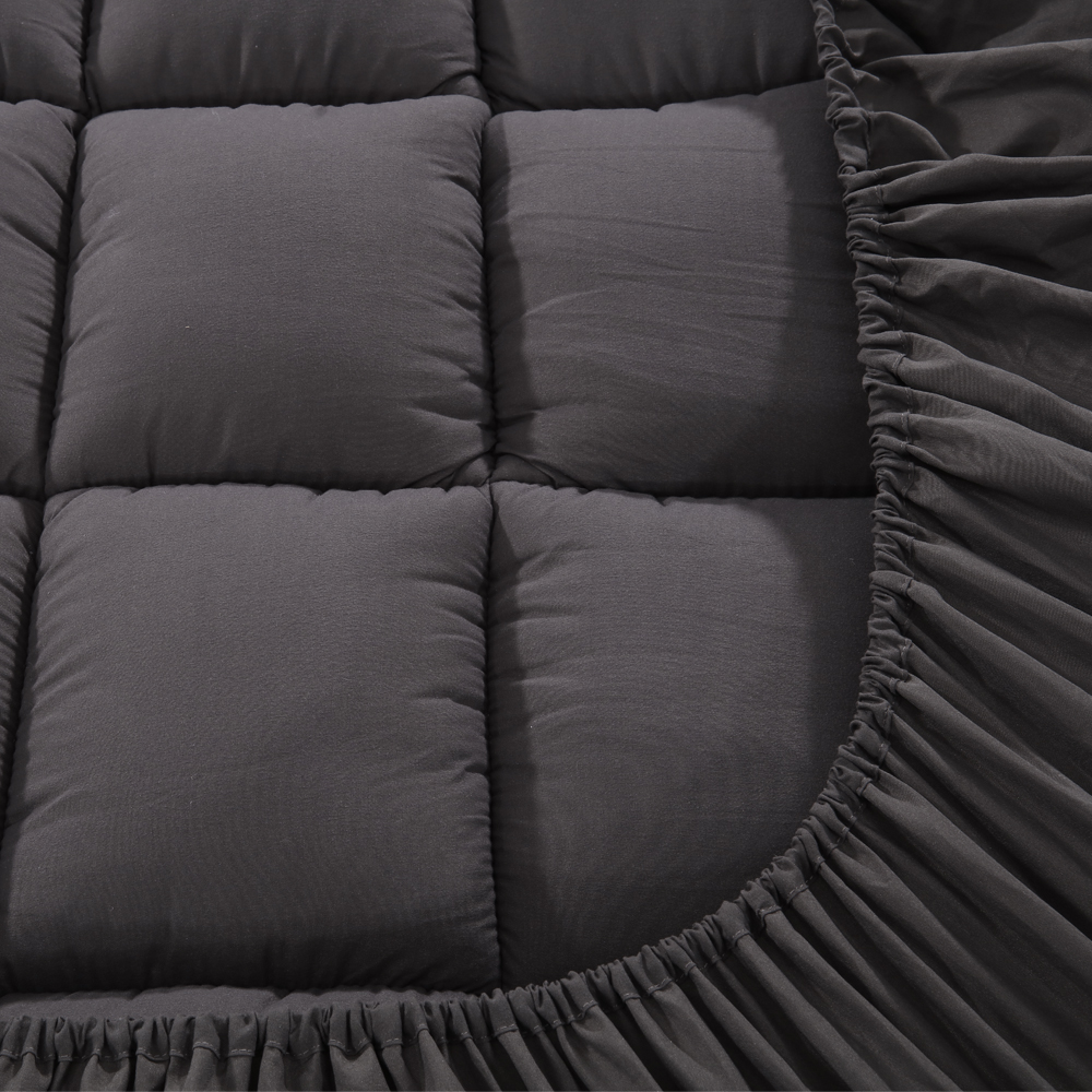 This mattress topper transforms your existing mattress into a more comfortable and luxurious sleeping surface. It features a plush bamboo charcoal microfibre filling and a high thread count fabric, providing softness and support. The design includes diamond-pattern stitching to keep the filling evenly distributed and a fully-fitted elastic skirt to ensure a secure fit on mattresses up to 45cm thick. The topper is breathable, anti-bacterial, dust mite resistant, and anti-allergy, promoting a healthy sleeping environment.